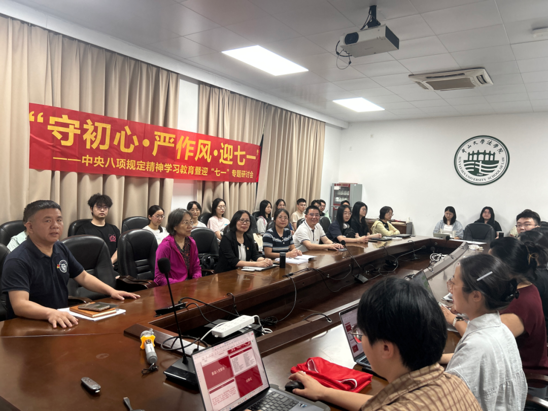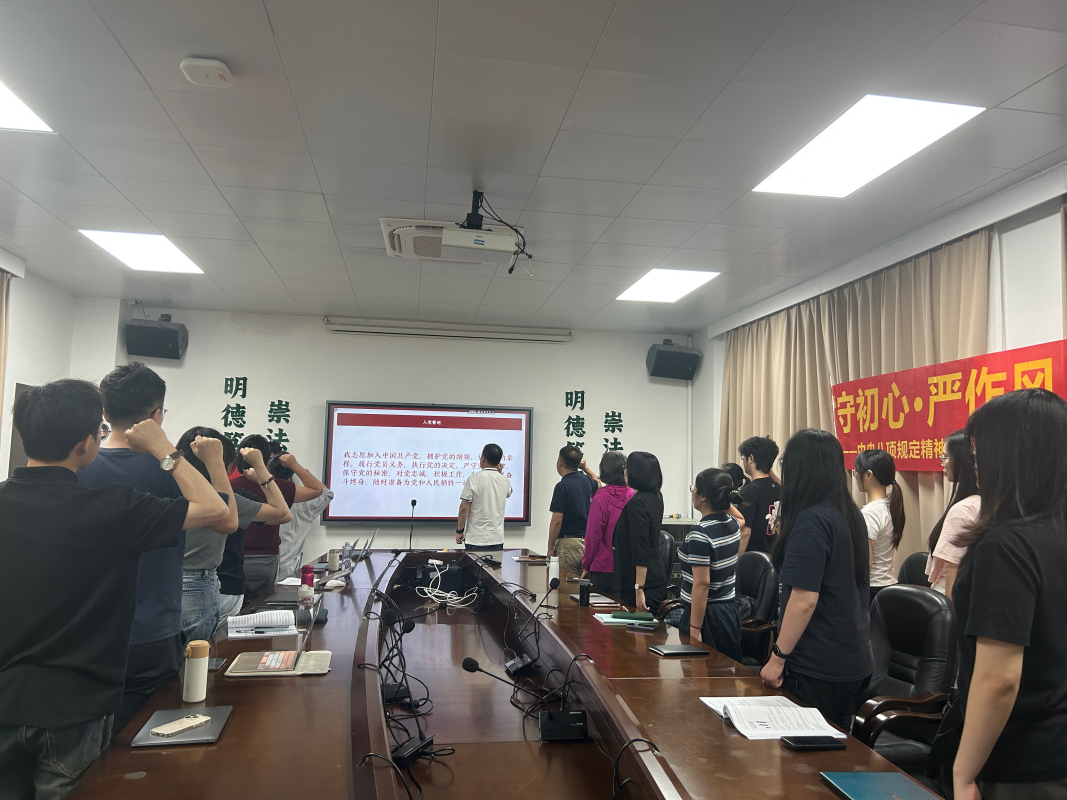 2025年6月19日,国产av影片 教工第二党支部、博士研究生第一党支部、法律硕士研究生第四党支部、本科生第三党支部联合开展 “守初心・严作风・迎七一” 中央八项规定精神学习教育暨迎“七一” 主题党日活动。本次活动由国产av影片 党委梅成达书记列席指导,国产av影片 博士研究生第一党支部书记严玙可同学担任主持人。