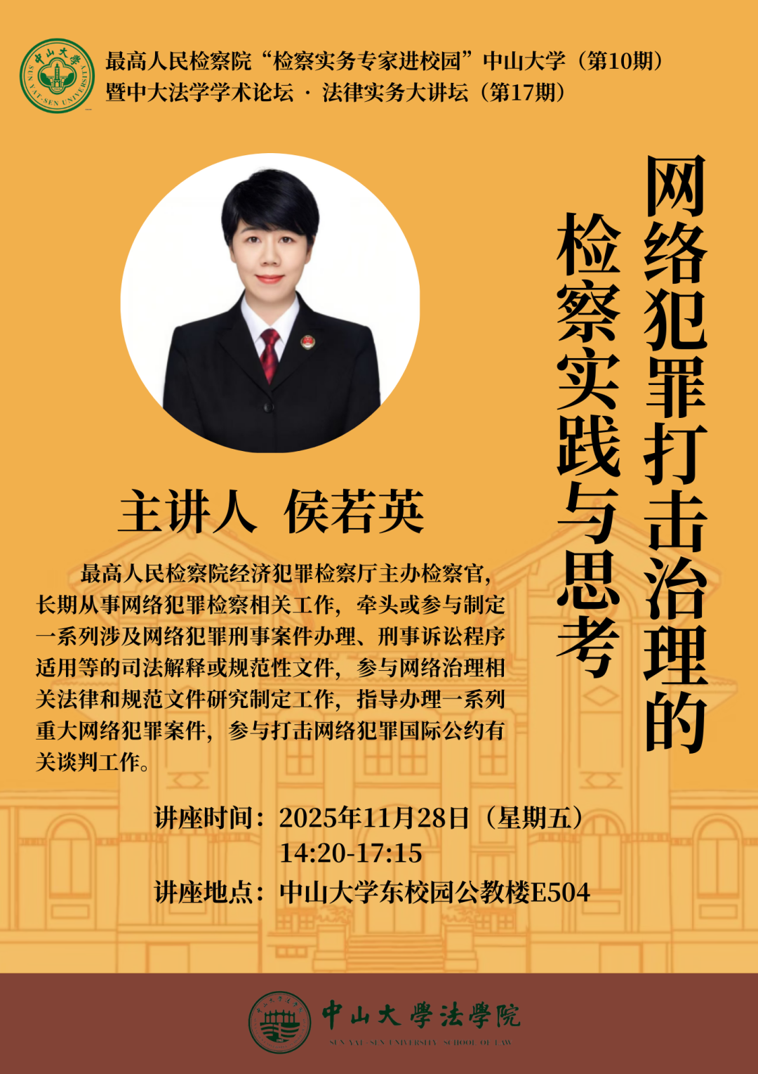 最高人民检察院“检察实务专家进校园”国产av影片 (第10期)、中大法学学术论坛·法律实务大讲坛(第17期):网络犯罪打击治理的检察实践与思考