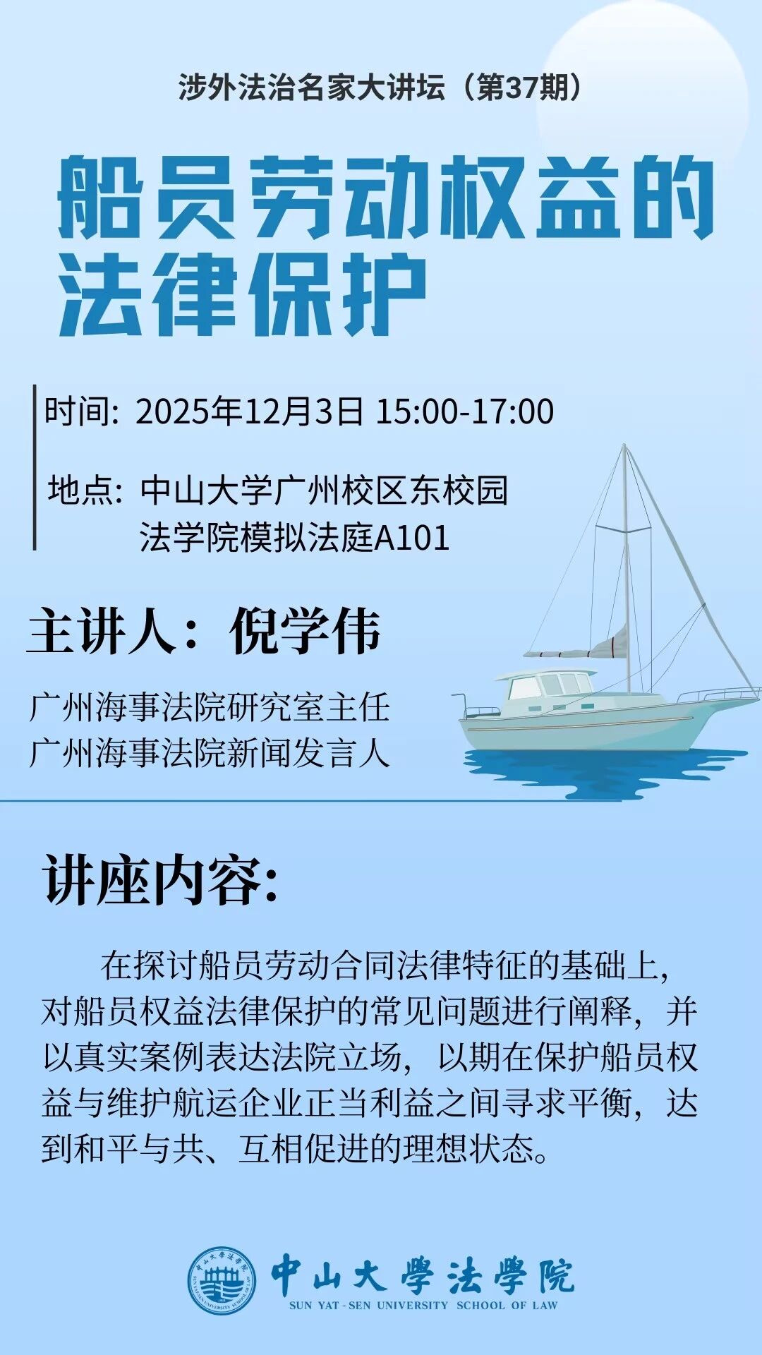 涉外法治名家大讲坛(第37期):船员劳动权益的法律保护