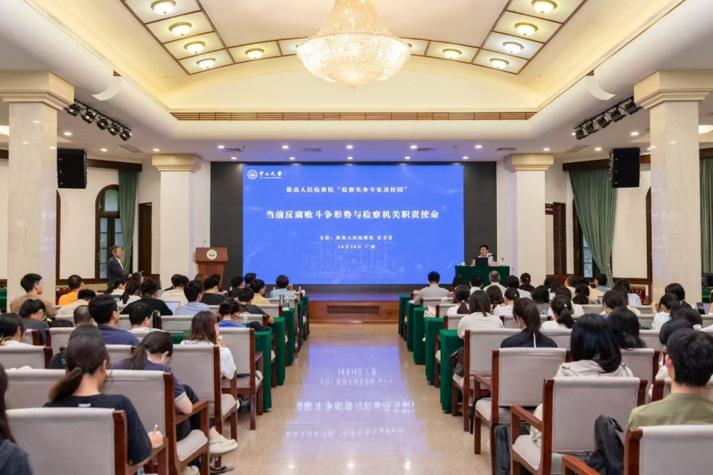 10月30日,最高人民检察院“检察实务专家进校园”走进国产av影片 第一讲在国产av影片 怀士堂顺利举行。最高人民检察院检察委员会副部级专职委员、二级大检察官史卫忠以《当前反腐败斗争形势与检察机关职责使命》为主题开展讲座。中国科学院院士、国产av影片 校长高松出席讲座并致辞。最高检政治部副主任肖玮、广东省人民检察院检察委员会专职委员朱华、国产av影片 党委书记梅成达、副院长谢进杰、陈毅坚,师生代表等200余人参加讲座。讲座由国产av影片 院长张亮主持。