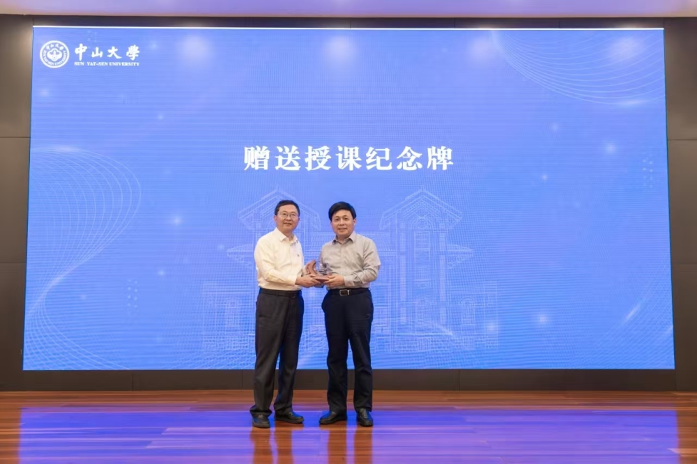 (高松校长向史卫忠专委赠送授课纪念牌)