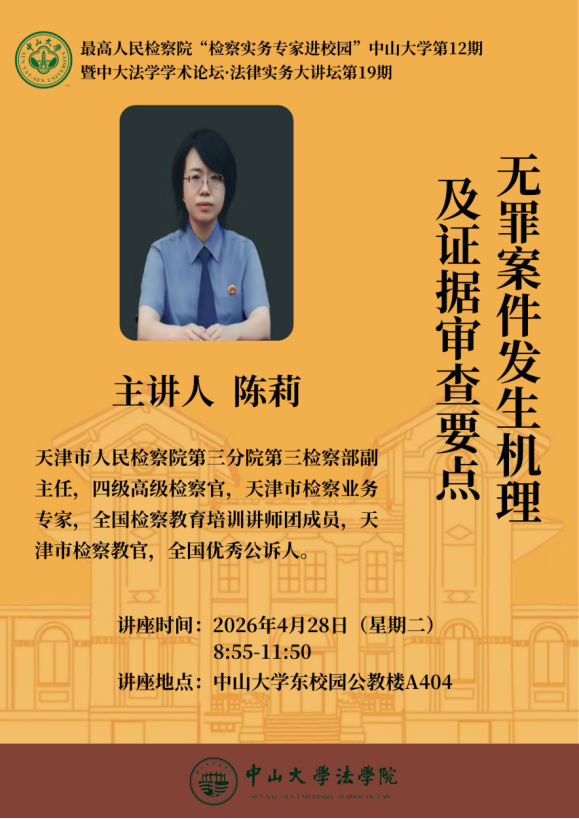 最高人民检察院“检察实务专家进校园”国产av影片 (第12期)、中大法学学术论坛·法律实务大讲坛(第19期):无罪案件发生机理及证据审查要点